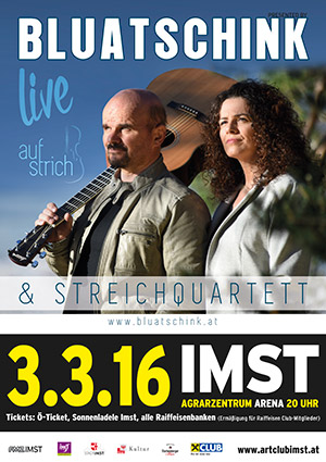 Und damit ist klar, dass auch bei den neuen Programm das Bluatschink-Geheim-Rezept für die Live-Konzerte beibehalten wurde: BLUATSCHINK live – das ist MUSIK & KABARETT Denn nicht nur die witzigen Songs, sondern auch die unterhaltsamen Zwischenansagen von Sprachhandwerker Toni Knittel garantieren seit Jahren Lachstürme und Bauchmuskelkater. Bluatschink & Streichquartett – das geht zusammen wie Bergkäse und Frühstücks-Semmerl, wie Tiroler Speck & Blunzn-Gröstl oder wie das Schalele Kaffee und ein Kipferl! 8 neue Songs und 9 alte Schinken in der neuen Streicher-Panier – ein Leckerbissen |
