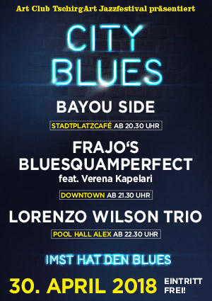 Im Rahmen des TschirgArt Jazzfestivals kann man am 30. April die Vielseitigkeit des Blues erleben. Flanieren Sie durch die Innenstadt und genießen Sie in drei Bars lässige Musik bei freiem Eintritt. |