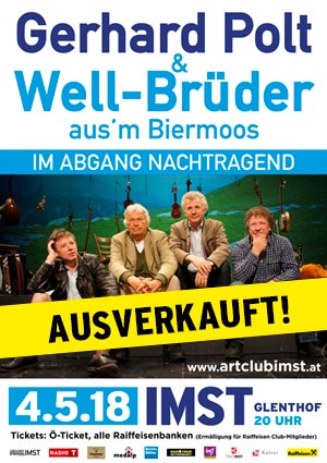 Es wird eine der immer selteneren Gastspiele sein, die man mit der absoluten Legende des bairischen Kabaretts erleben darf. Es wird ein unvergesslicher Abend werden mit Polt, dem grantigen Moralisten. Und mit den 3 Well-Brüdern, seinem Begleittrio. Wenn die Vier auf der großen Bühne stehen und kräftig poltern & blosn - das ist die absolute kabarettistische Steigerung!