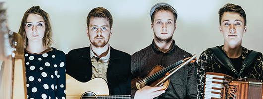 Mit dem jungen schottischen Quartett TANNARA wird eine solch eine moderne Band präsentiert. Owen Sinclair (Acoustic Guitar/Electric Guitar/Vocals), Becca Skeoch (Harp), Joseph Peach (Accordion) und Robbie Greig (Fiddle) arrangieren all ihre Stücke, spielen also keine alten Tunes nach, wie es – vor allem in der irischen Szene, aber auch in Schottland zum Großteil üblich war. Damit klingt das Repertoire frischer und schräger und sorgt für staunende Gesichter! 2016 wurde TANNARA als „Up and Coming Artists of the Year” bei den „Scots Trad Music Awards” nominiert und die Debut-CD „Trig” sorgte für einigen medialen Rummel