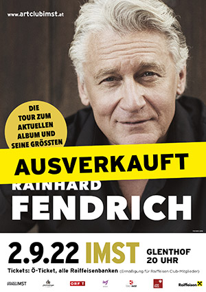 Ein Konzerthöhepunkt im Jahresprogramm des Art Club Imst steigt am 2. September, wenn Rainhard Fendrich mit Band im Glenthof sein neues Album „Starkregen“ vorstellt und natürlich auch alle seine großen Hits (u.a. Es lebe der Sport, Macho Macho, Strada del sole, I am from Austria, Vü schöner is des G‘fühl, Weus‘d a Herz hast wia a Bergwerk, Manchmal Denk I No An Di) Revue passieren lässt.