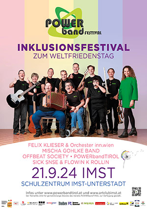 Zahlreiche Firmen und Gönner unterstützen bereits das Inklusionsfestival: Stadtgemeinde Imst, McDonald’s, Raiffeisen, Neuroth, Bergbahnen Sölden, Intersport Imst, Webmedia Huber, Immo Konrad, Holz Pfeifer, Der Grissemann Zams, Zebisch Trockenbau, Rotary Club Imst-Landeck und Hotel Hirschen Imst. Interessierte Sponsoren und Spender können sich gerne noch am Festival beteiligen: Kontoinhaber: POWERbandTIROL, Bankverbindung: Raiffeisenbank Oberland-Reutte; IBAN: AT583699000009158437. |