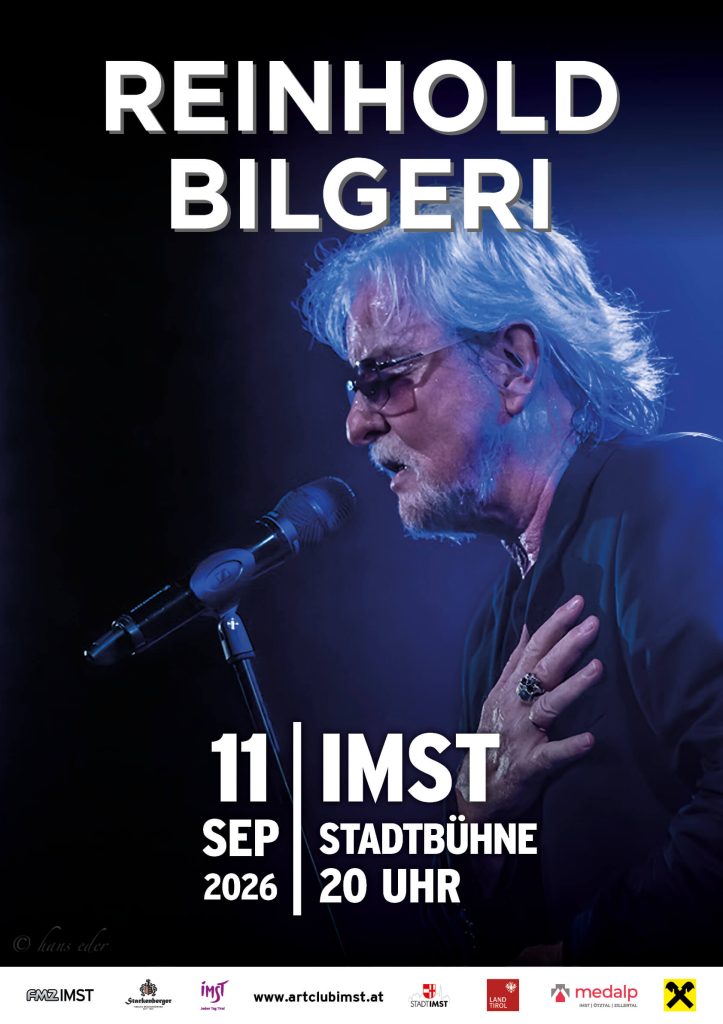 Mit dem „verrückten“ SHOWDRUMMER Heini Altbart und einer hochkarätigen Live – Band mit Max Tschida (Keyboards) Tobias Faulhammer (Guitar) Sebastian Küberl (Bass) und Heini Altbart (Drums) liefert BILGERI einen spektakulären SHOW – MIX aus seinen TOP HITS („Video Life“, “Some Girls are Ladies“, „Missing you“, „Love is free“, „Desperado“ „Oho Vorarlberg“ usw.) und den ewigen Songs seiner Idole (von Stevie Wonder bis Joe Cocker, von James Brown bis Lenny Kravitz)!