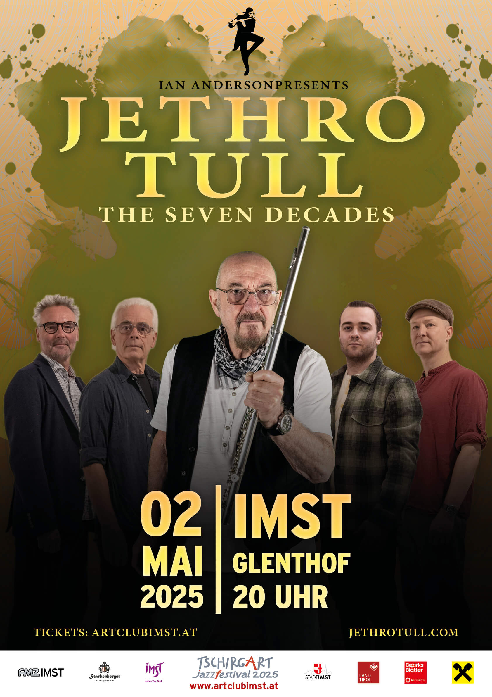 „The Seven Decades“-Tour verwöhnt die Fans mit Songs aus dem gesamten Musikkatalog der Band, vom Debütalbum „This Was“ aus dem Jahr 1968 bis hin zu ihrem letzten Album „RökFlöte“. Seit Jethro Tull vor 56 Jahren erstmals in London auftraten hat sich eine weltumspannende Fangemeinde gebildet, ihre Kompositionen (Locomotive Breath, Living in the Past, Aqualung, Thick As A Brick, Too Old To Rock And Roll: Too Young To Die etc.) genießen Kult-Status. Ähnlich wie die Auftritte von Jethro Tull in Imst – angefangen vom legendären Stadtplatz-Open-Air 1988 bis hin zum ausverkauften Konzert 2019 im Glenthof, wo die Band ihr 50. Bestandsjubiläum feierte. Mit ihren 23 Studioalben haben sie die Grenzen ihrer Musik immer weiter verschoben. Mit Ian Andersons ikonischem Flötenspiel, gepaart mit seiner unverwechselbaren Stimme, sind sie eine der wichtigsten und unverwechselbarsten Bands der Rockgeschichte, und Ians Wunsch nach ständiger Innovation hat dafür gesorgt, dass sie heute noch genauso relevant sind wie in den siebziger Jahren.
