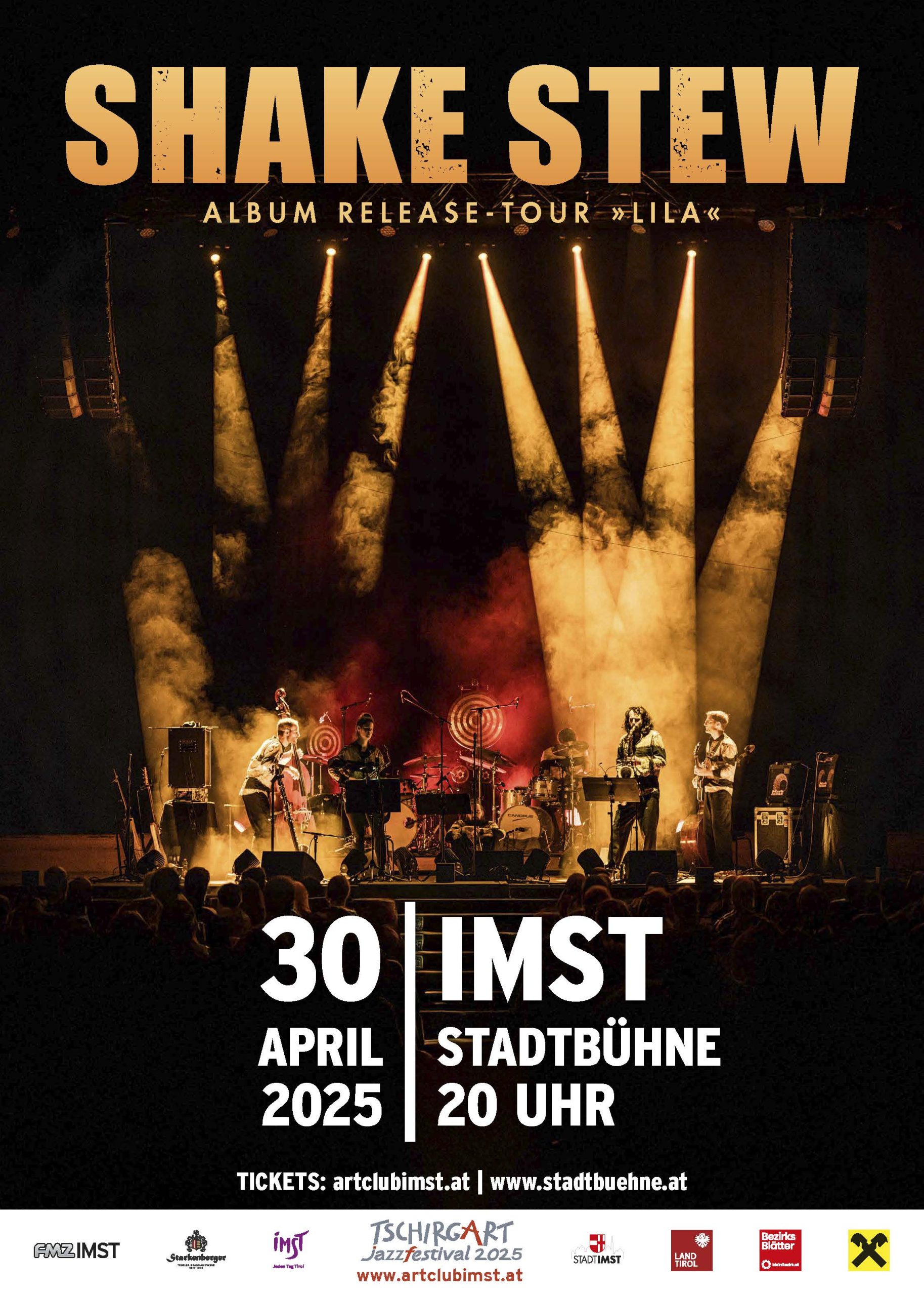 Die preisgekrönten Shooting-Stars von Shake Stew (Amadeus Music Award, Deutscher Jazzpreis) präsentieren ihr sechstes Album „Lila“ und liefern dabei einen weiteren Beweis dafür, warum ihr einzigartiger Mix aus hypnotischen Beats und hochemotionalen Melodien so süchtig macht – und ihre mitreissenden Live-Konzerte schon jetzt Kultstatus genießen!